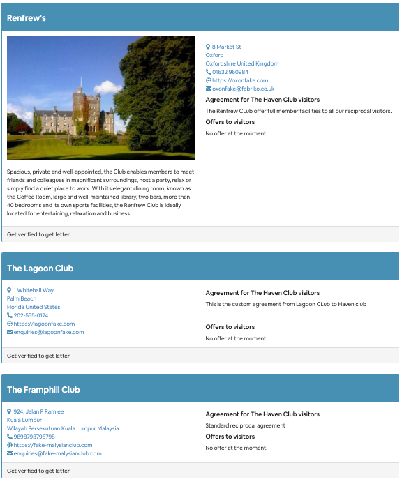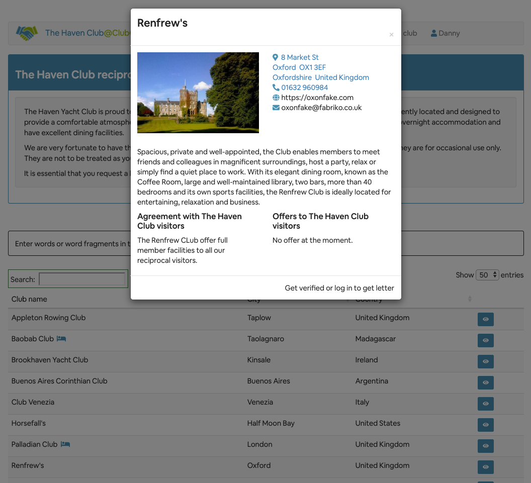 This is most suited to clubs that have a reciprocal list of 25 or less.