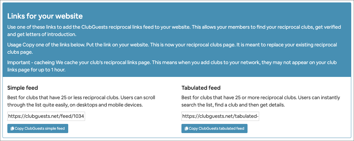 ClubGuests caches the feeds to improve network performance.